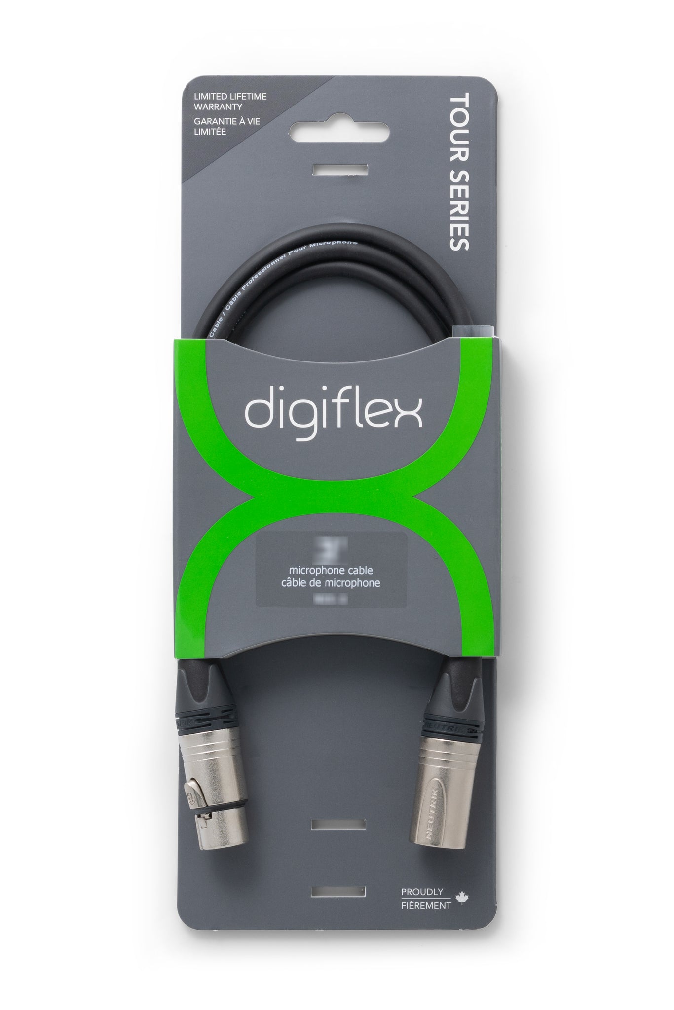 Professional Touring Series microphone cables have the perfect mix of proven high quality and ruggedness to withstand the rigors of professional touring. A high density pure copper shield and tightly twisted conductors combined with a very flexible jacket ensure these cables will perform flawlessly night after night. Neutrik new generation XX Series connectors with silver contacts provide the ultimate connection. Neutrik NC3FXX female XLR to NC3MXX male XLR with Digiflex NK2/6 cable.